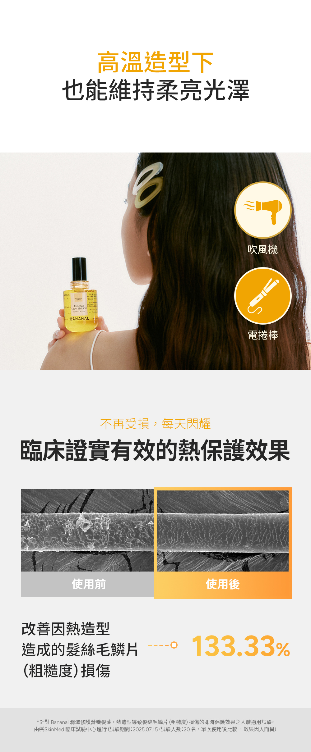 改善因熱造型造成的髮絲毛鱗片(粗糙度)損傷 133.33%