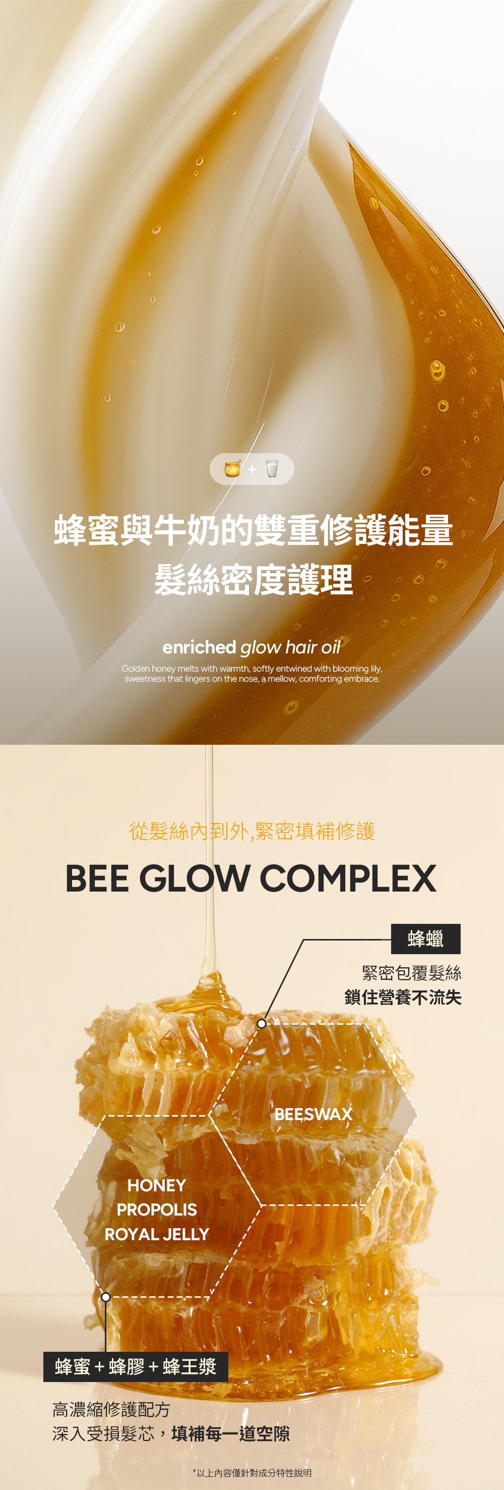 濃縮蜜糖精華質地緊密包覆髮絲,