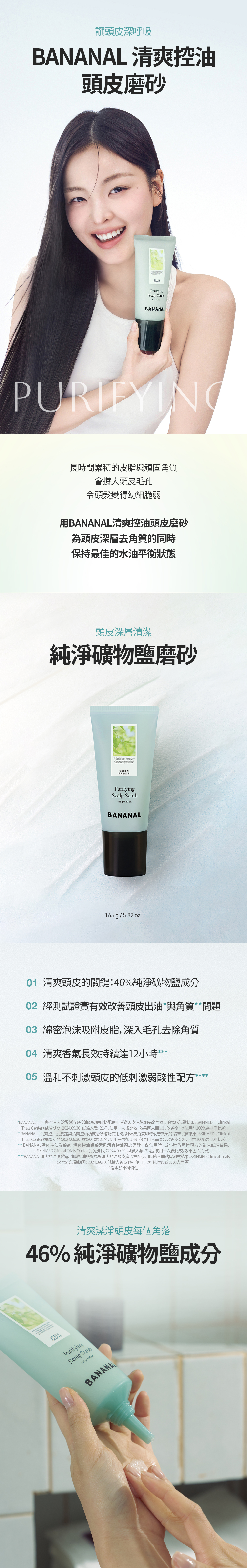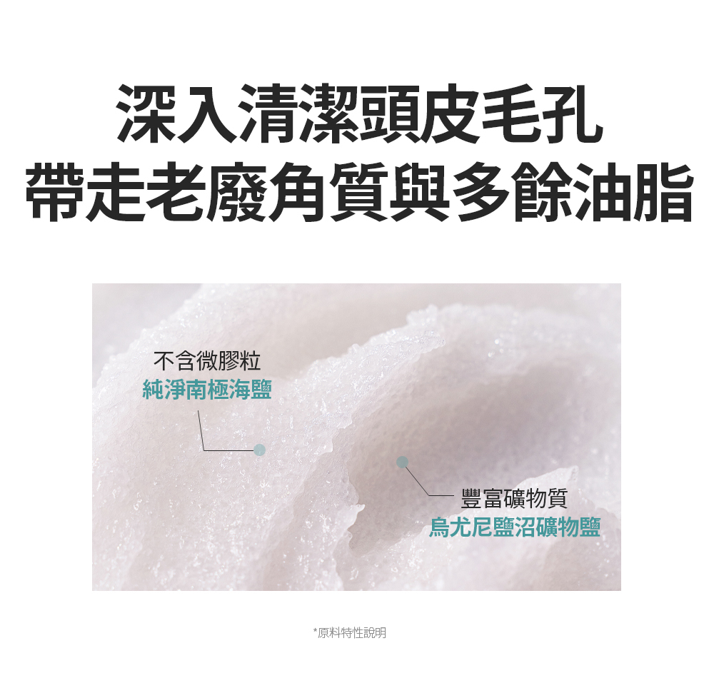 ✅磨砂含純淨礦物鹽成分,改善頭皮出油並溫