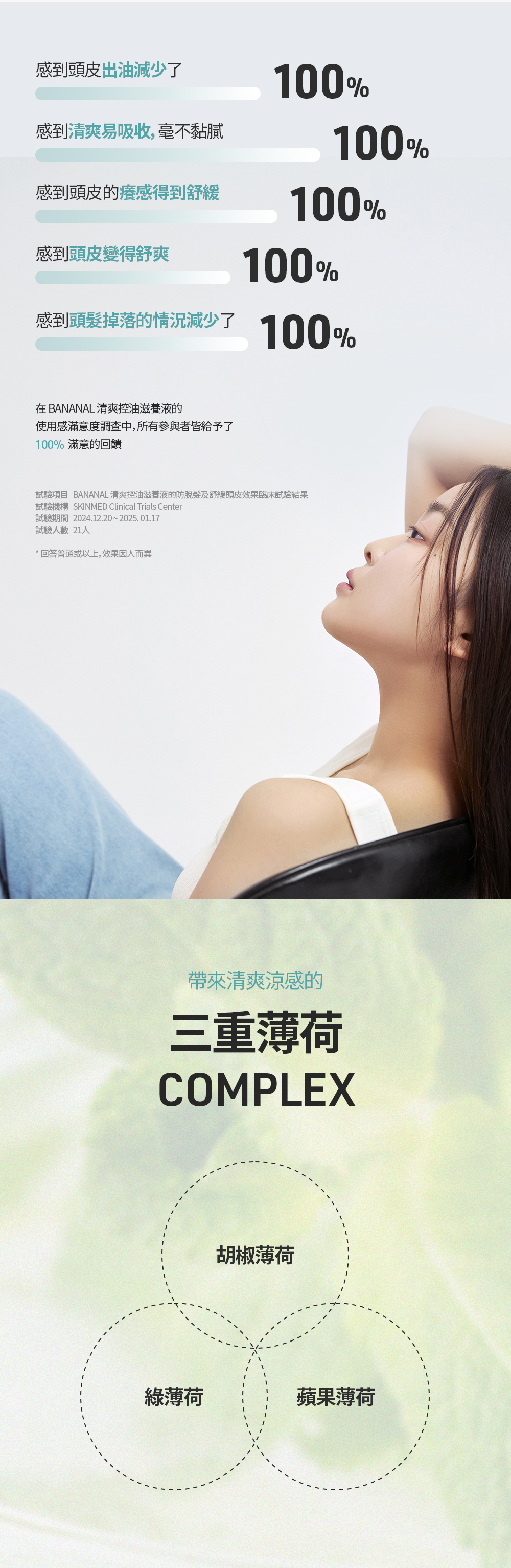 ✅滋養液維持頭皮水油平衡,含3種薄荷成分幫助頭皮降溫,4周內掉髮減少