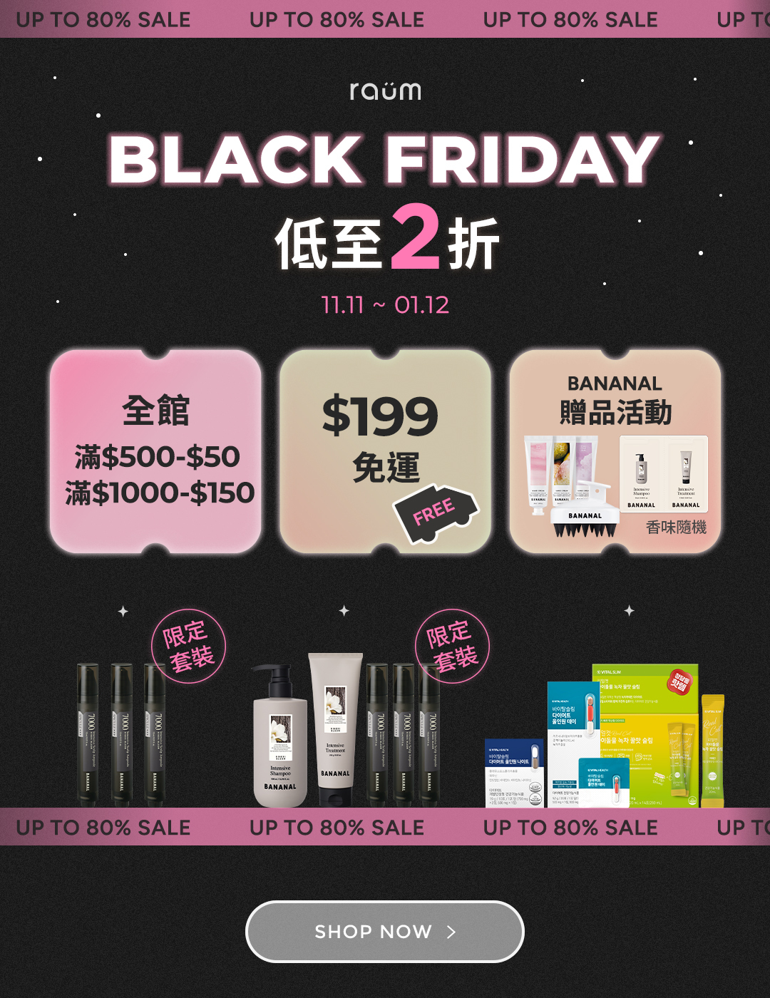 至2025-12-01T04:00:00.000+00:00截止 全店,BLACK FRIDAY 滿$199免運