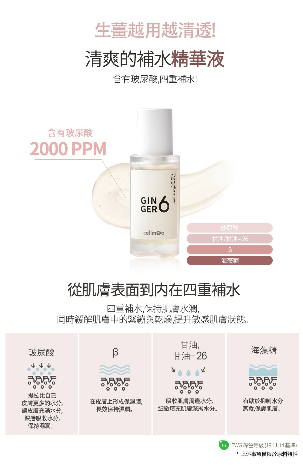 并含2000PPM玻尿酸,給皮膚進行4重深層補水