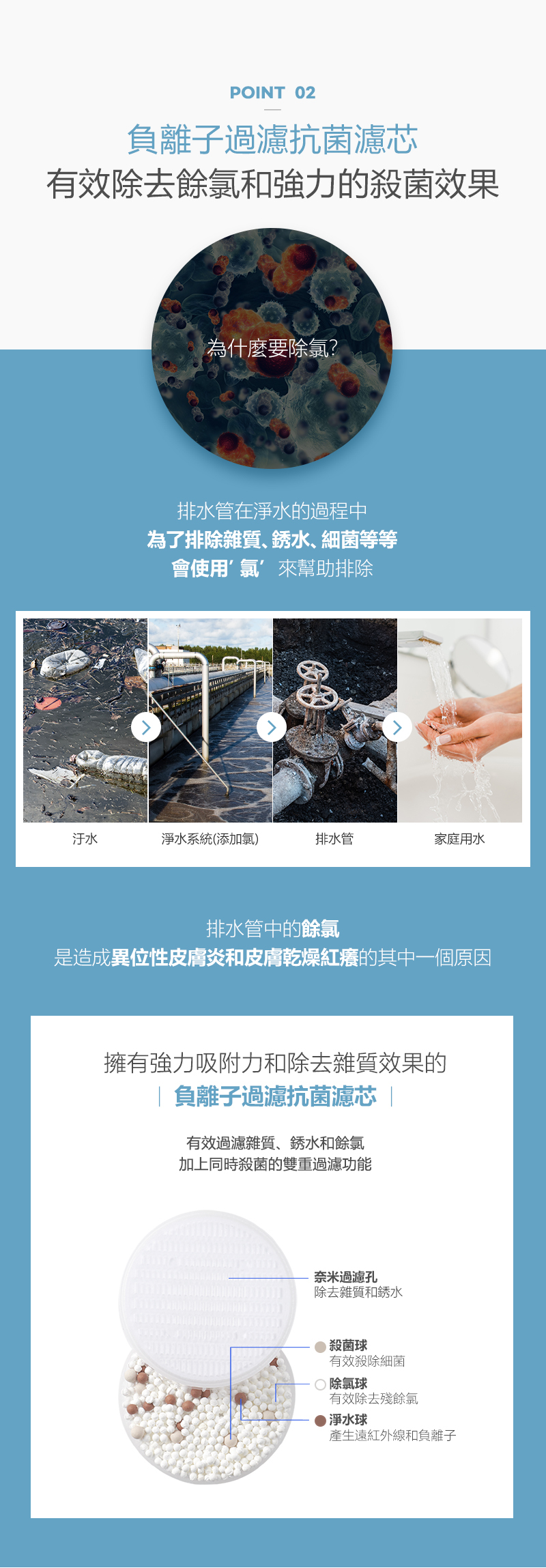 4重負離子過濾 有效除氯及過濾雜質,銹水和幼蟲